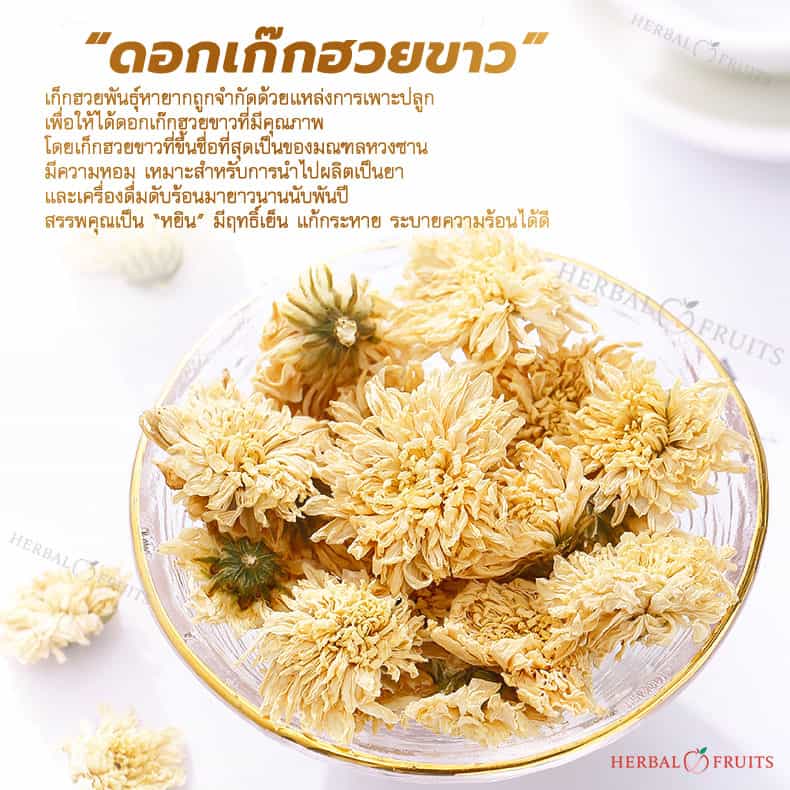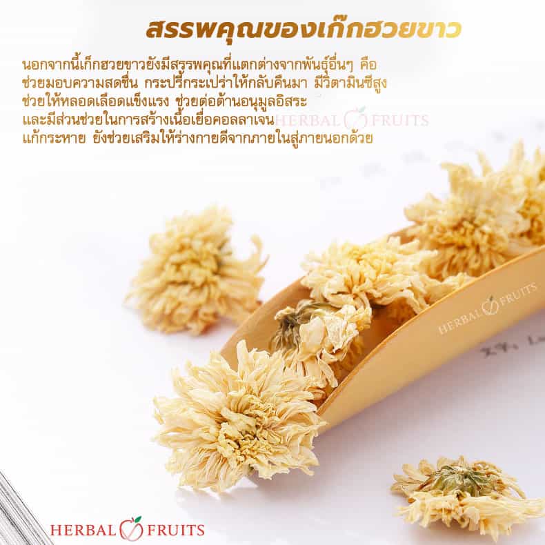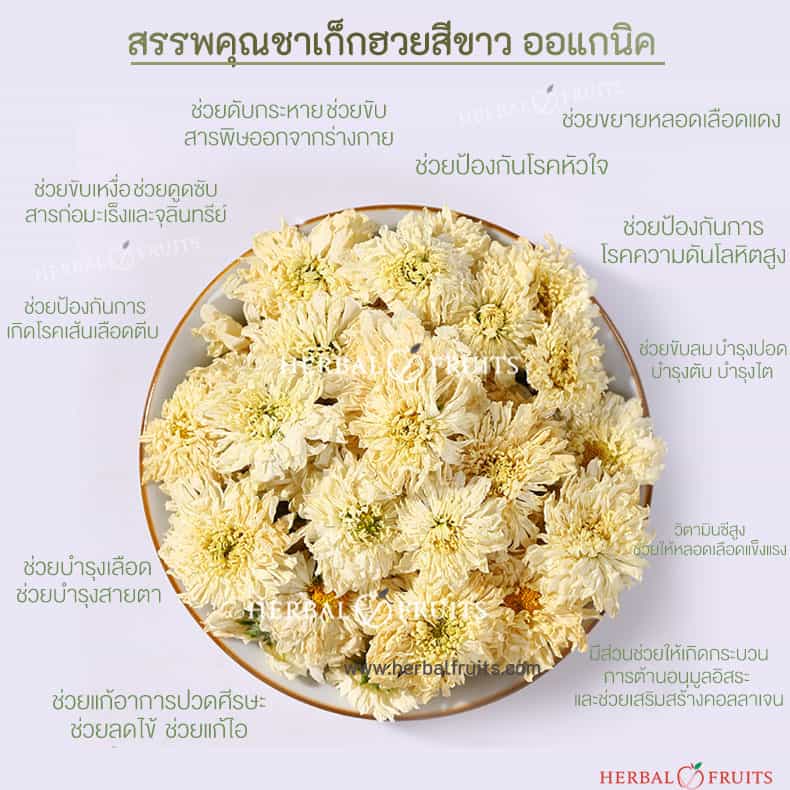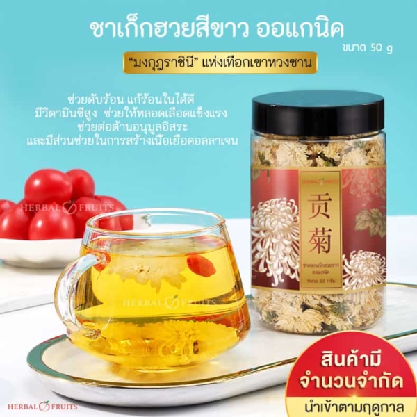 ชาดอกเก๊กฮวย พันธุ์ดอกขาว ออแกนิค ไม่แต่งกลิ่น สีและรส ปลอดสาร ขนาด 50 กรัม